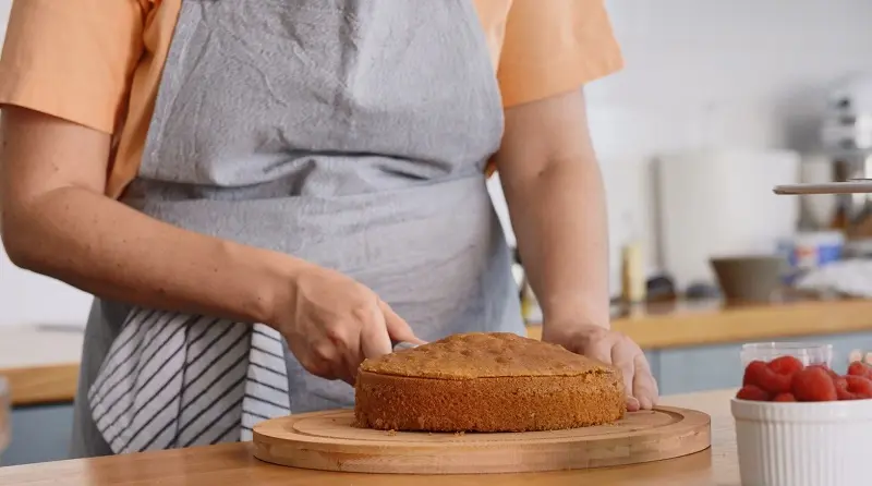 - La découpe : Une fois refroidie, découpez la génoise horizontalement en deux ou trois couches égales.