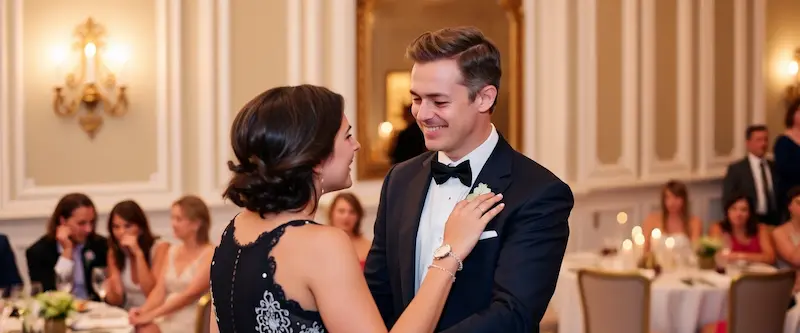 - Inclinaison du corps : Se penche légèrement vers la femme lors des conversations.
